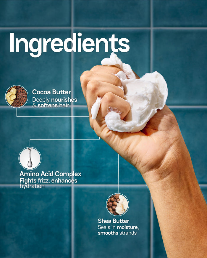 Get up to 50% smoother, softer, shinier hair* in just 3 uses. Enriched with shea and cocoa butter to deeply soften, and powered by an amino-acid complex that locks in moisture while protecting your hair barrier. Plus, its anti-humidity action helps smooth frizz by up to 37%*. Indulgent, effective, and made for every hair type.