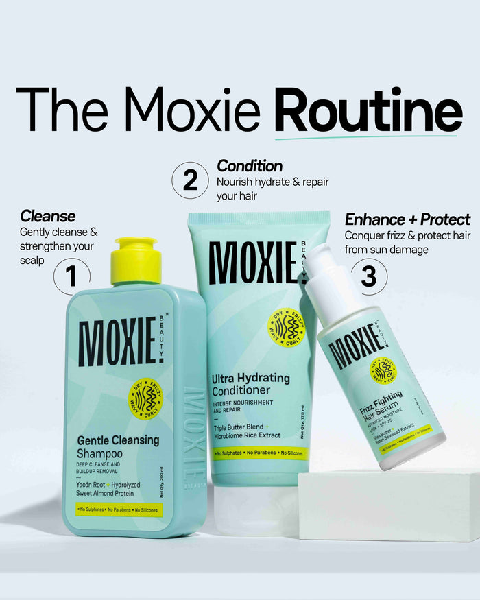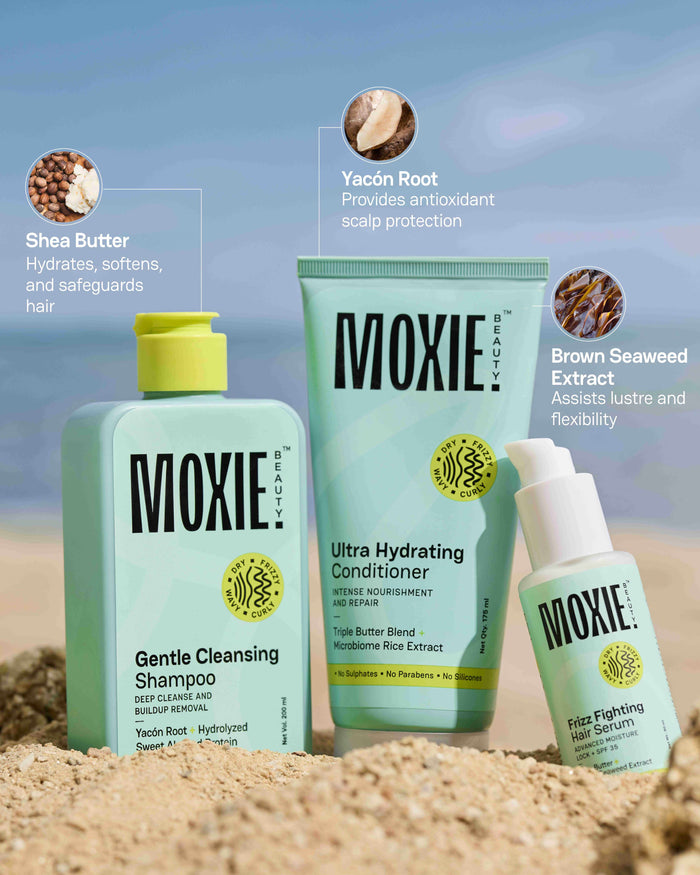 This essential collection is your key to soft, manageable hair. You'll find our Gentle Cleansing Shampoo to refresh your scalp, our Ultra Hydrating Conditioner to give your hair a major moisture boost, and our Frizz Fighting Serum with SPF 35 to keep your hair soft, frizz-free and protected from the sun.