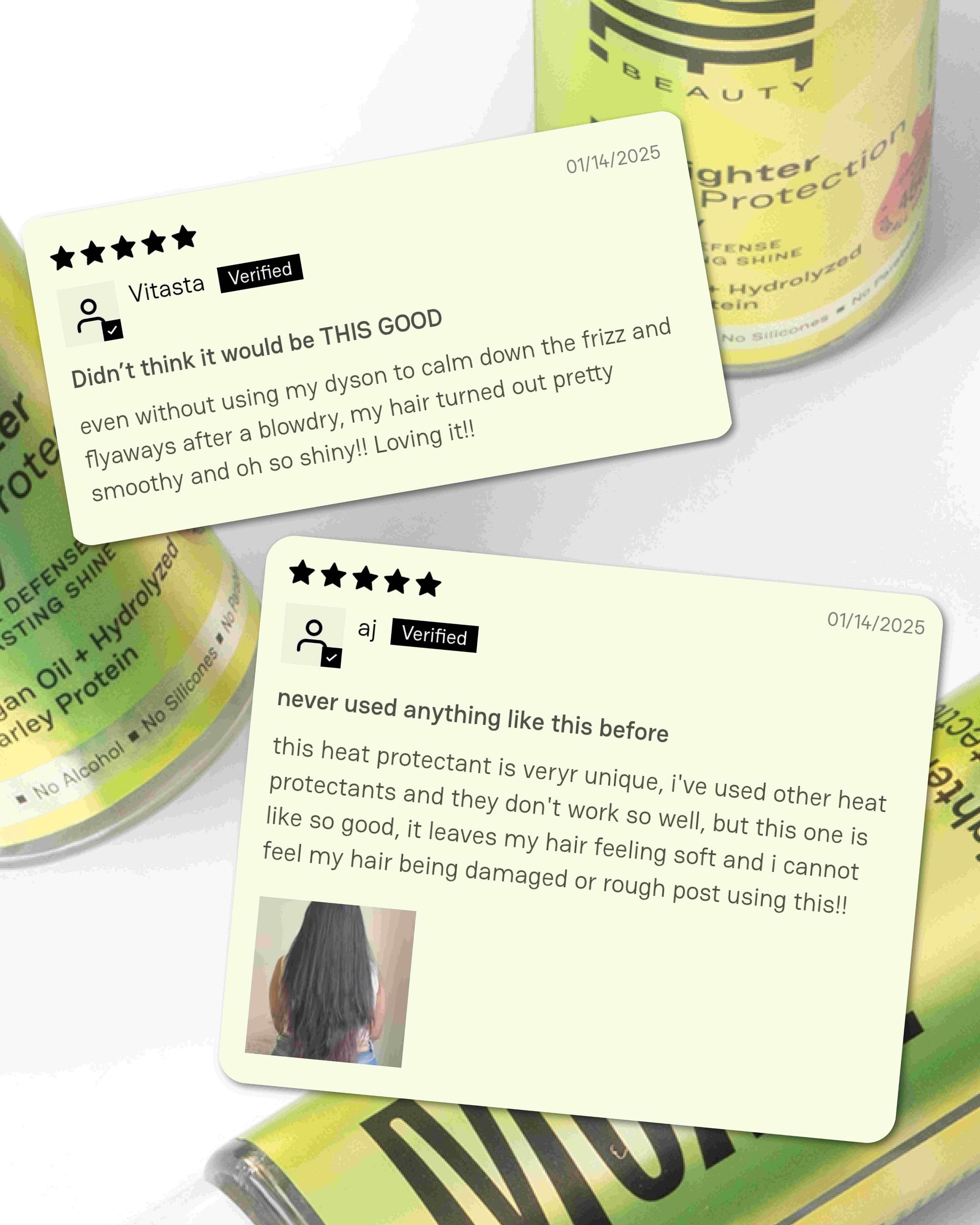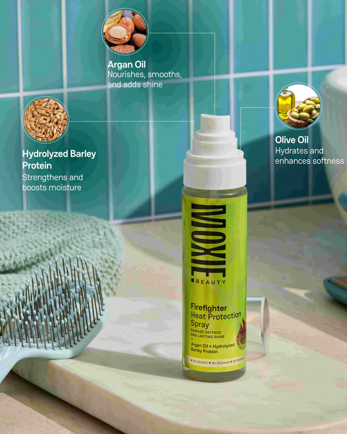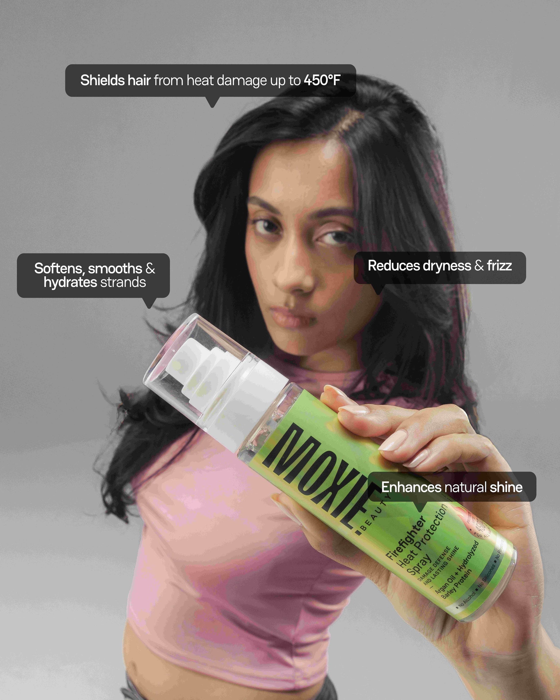 The all-new Firefighter Heat Protection Spray shields your strands from heat damage up to 450°F. A few pumps of this oil-based formula will protect your hair from the heat, reduce dryness and frizz, and leave your strands feeling soft, smooth, and hydrated!