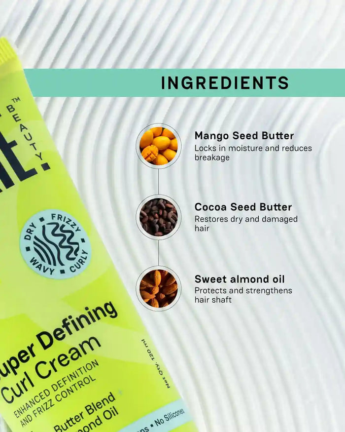 Discover curls like never before with our Super Defining Curl Cream. Packed with nourishing oils and butters, it deeply moisturises the strands, boosts curl pattern, and minimises frizz. A must-have, especially for coarse or dry hair.