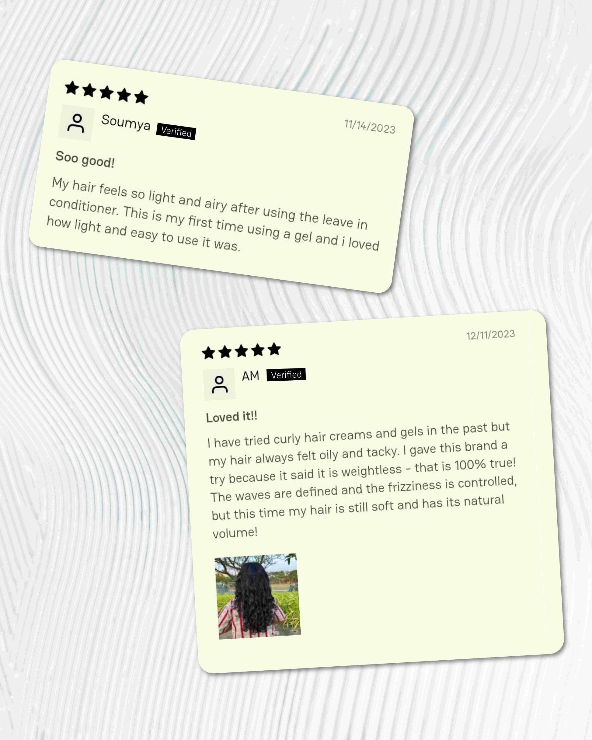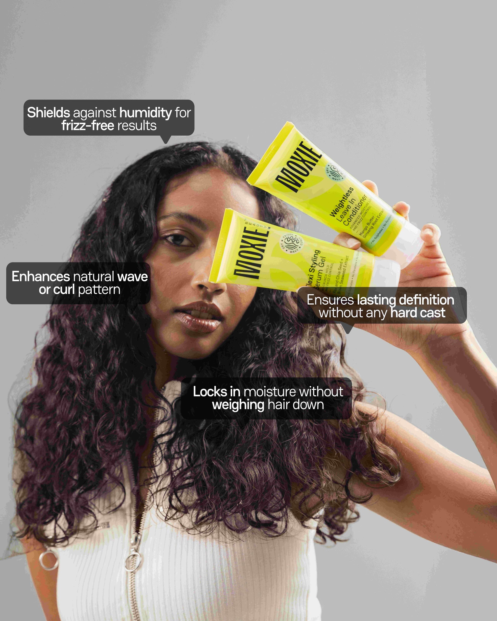 Our weightless leave-in conditioner locks in moisture and defines your waves, and our styling serum gel ensures frizz control and hold, for soft bouncy waves that last for days. If most hair creams weigh your hair down, this duo is your go-to!